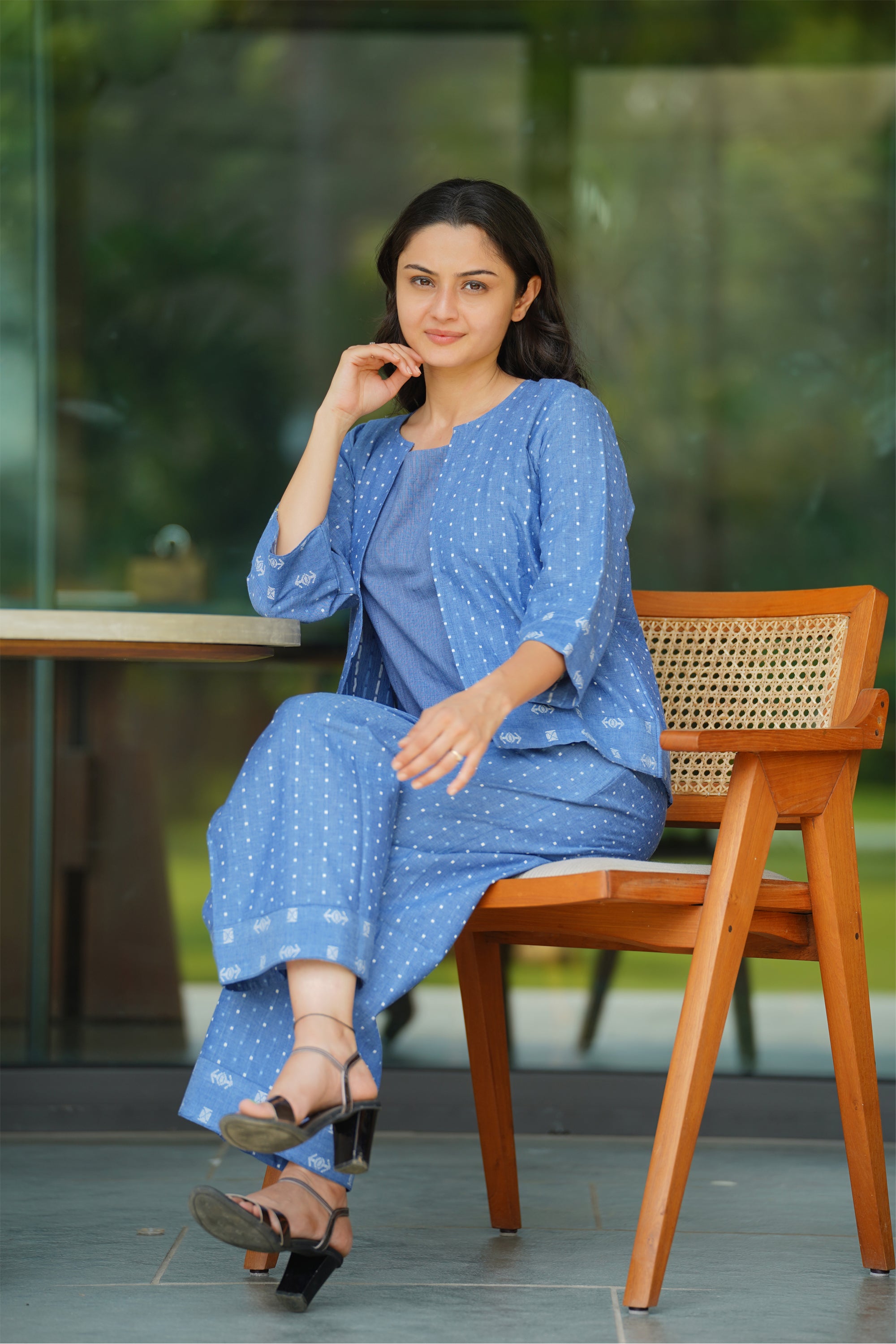 Three-Piece Ensemble: The Revive Co-ord Set introduces a triad of elegance with its three-piece ensemble, combining style and versatility in handwoven cotton for a sophisticated look.